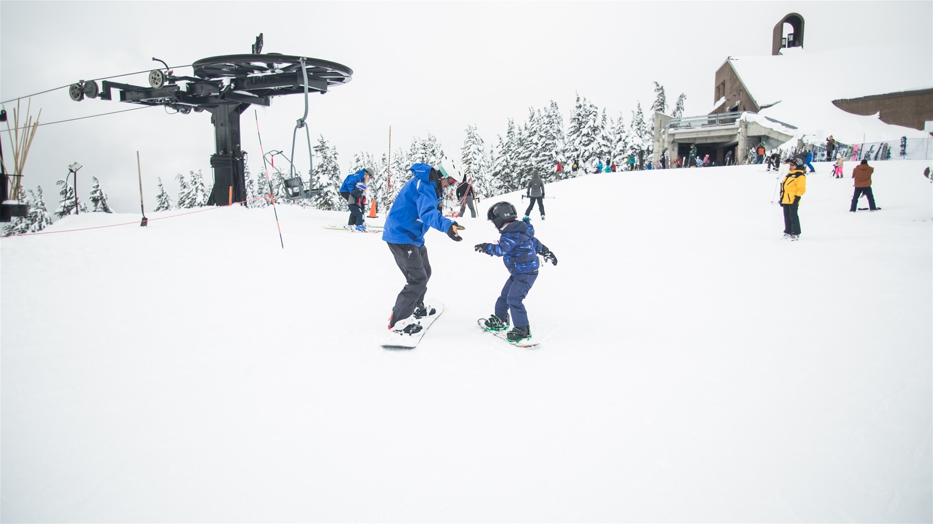 If your kids are getting cold, head inside to warm up. Keep a game, book, or toy in your pocket or backpack for impromptu breaks in the Sunrise lodge. If your kids are comfortable on green runs, the mid-mountain Pine Marten Lodge can be a perfect stop for a mid-day hot cocoa, or a kid-friendly slice of pizza.